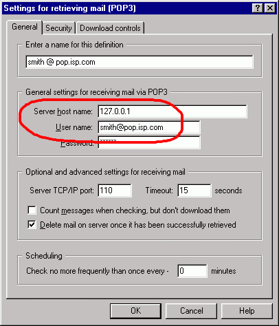 SpamWeasel Support Issues Pegasus configuration 1 Click on Tools | Internet Options. ![]() 2 On the screen that appears, select the "Receiving (POP3)" tab. ![]() 3 Double-click on the account you wish to use with SpamWeasel. ![]() 4 The screen that appears will show your current settings. ![]() 5 At the end of the "User name" field, type an "@" sign, followed by the contents of the "Server host name" field. Next, change the "Server host name" field to "127.0.0.1". Click OK to apply the settings. ![]() |